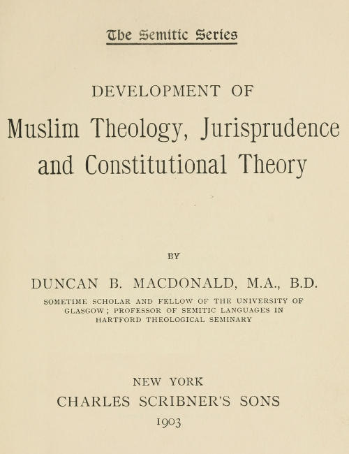 IX. Development of Muslim Theology, Jurisprudence and Constitutional Theory. By Professor D. B. Macdonald, Hartford Theological Seminary. [Now Ready.