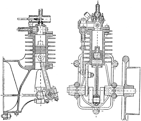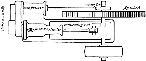 The arrangement is characteristic of the second group. This again can be modified to form the third group, by allowing the gases to burn under constant pressure throughout the stroke instead of violently exploding at the commencement. Engines using this sort of progressive combustion have been designed by Simon and Brayton.