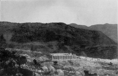 | From a photograph by the English Photo Co., Athens. In the foreground are the columns of the oldest temple in Greece | ||