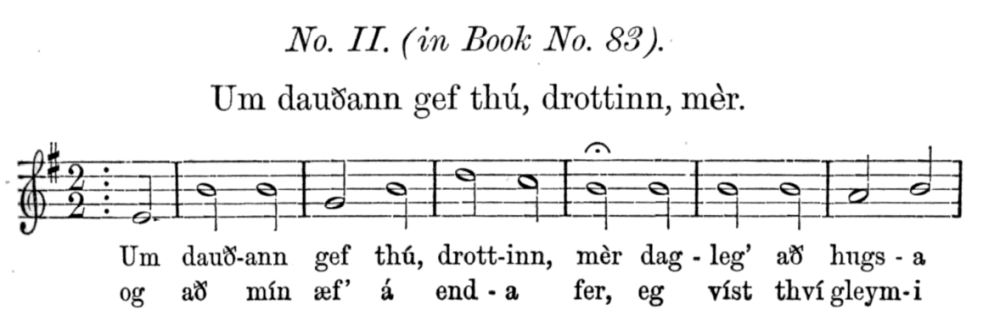 [377] According to Professor J. M. Thiele (Copenhagen, 1832), he was descended on the spindle side—where, by-the-by, almost any descent can be established—from the royal blood of Scandinavia. The family, once settled at Óslandshlíð in Skagafjörð, sank, and his father Gottskálk emigrated to Copenhagen, where he lived by carving figureheads for shipwrights. His mother was a clergyman’s daughter, and he was born November 19, 1770. Finn Magnússon (Antiquitates Americanæ) has also drawn up his pedigree.