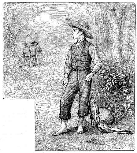 "Hooray! I've got him! Look, boys! I'll bet a six-pence he'll weigh over three pounds. He pulled like a savage."