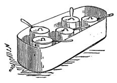 [F] Francatelli used three oblong tin pans, three inches deep, instead of plates, the under and upper pans serving to hold the pounded ice.—Ed.