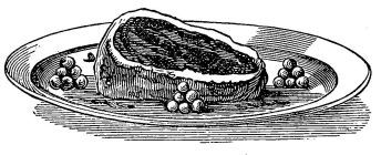 The English mode is to set the whole of each course, often containing many dishes, at once upon the table. Such dishes{14} as require carving, after having been once placed on the dinner-table, are removed to a side-table, and there carved by an expert servant. Serving several dishes at one time, of course, impairs the quality of many, on account of the impossibility of keeping them hot. This might, in fact, render some dishes quite worthless.