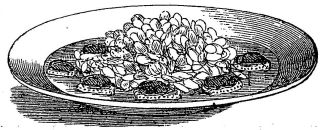 At large companies, where there is necessarily a greater variety of dishes, the most voracious appetite must be satisfied with a little of each. Then, do not supply more than is absolutely needed; it is a foolish and unfashionable waste. “Hospitality is not to be measured by the square inch and calculated by cubic feet of beef or mutton.”