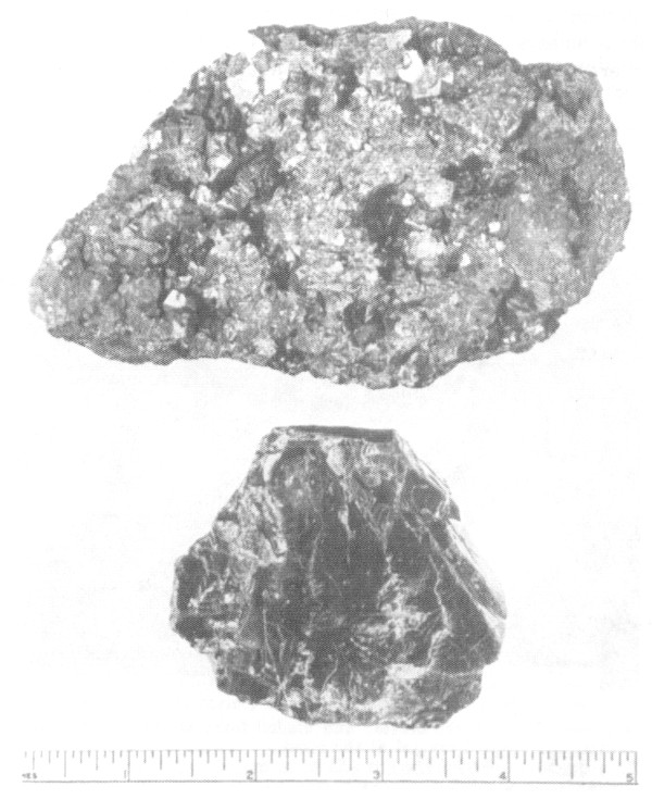 Arrow heads, scrapers, rock knives and saws which were left by the Indians who formerly lived in Missouri may be found in moderate abundance in many parts of the state. Usually these artifacts are chert in its various colors, white, gray, mottled, reddish, or black (flint). See the discussion of chert on page 34. Chert, because of its conchoidal fracture, lack of cleavage, resistance to chemical weathering, and superior hardness, is an exceptionally useful rock for making tools and weapons.