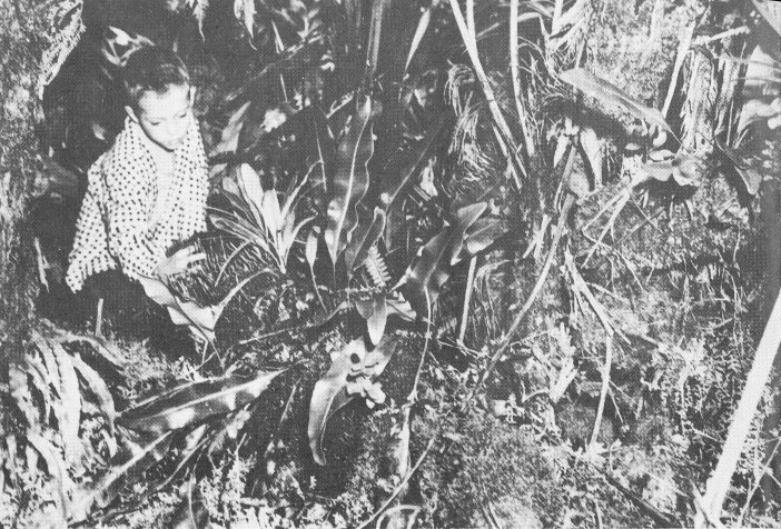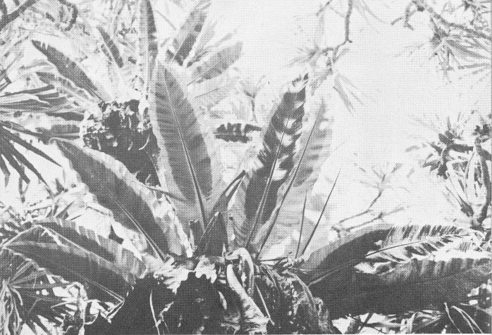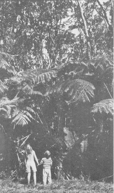 Sharp eyes will be needed to detect the filmy ferns, since they normally are found on tree trunks and rocks in the jungles, and may easily be confused with the mosses with which they commonly grow. Compare the size of the dainty PALAILAULII, which is about one inch long, with the tree ferns, which often reach a height of 40 feet.