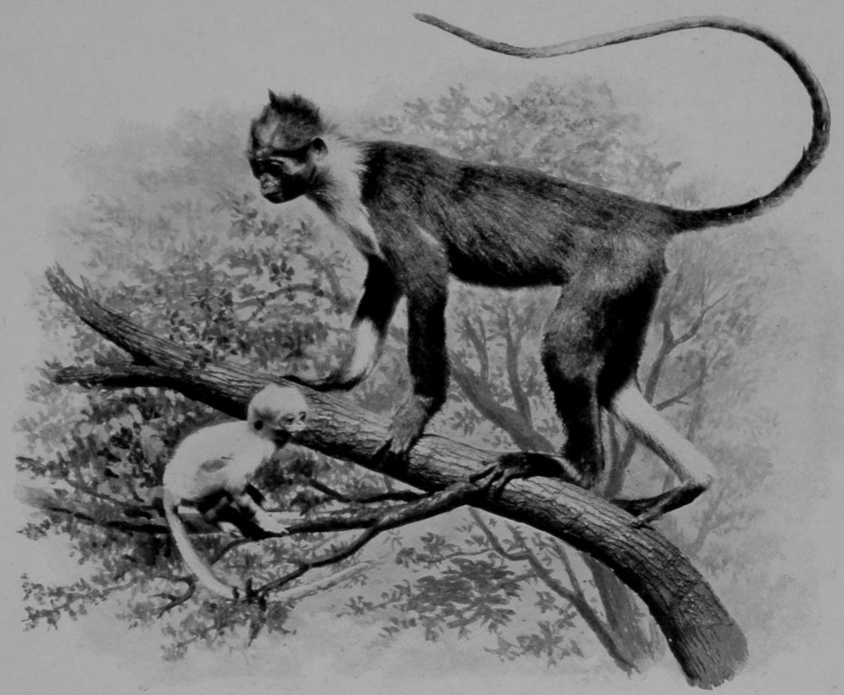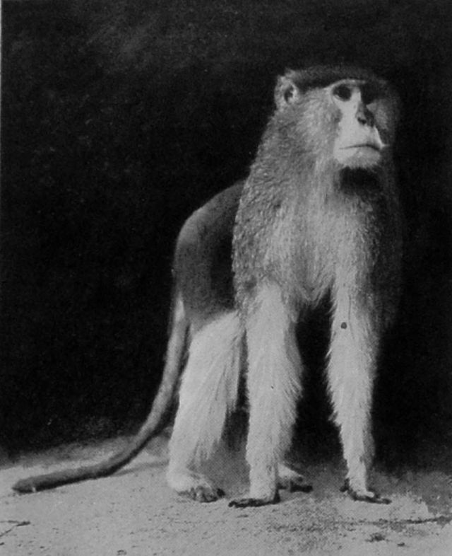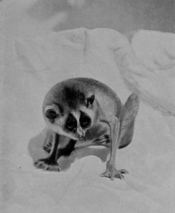 A third and very distinct type of American opossums is the one represented on page 380, which, from its mouse-like size and aspect, is commonly known as the Murine Opossum. The most distinct feature of this little animal is that, though a genuine marsupial, it has no pouch, but carries its young on its back, the little creatures twining their tails round that of their mother, and so securing a stable anchorage. Although thus loaded up and transformed for the time being into a sort of combination perambulator and feeding-flask, the happy but anxious parent pursues the even tenor of her way among the tree-branches and thicket-growths with almost unabated agility. This species, in common with Meriam's Opossum and the Woolly Opossum and several others which carry their young, to as many as a dozen {379}in number, on their backs, are denizens of tropical South America. One of these, named the Philander Opossum, attains to the somewhat larger size of about 2 feet in total length, the long prehensile tail representing, however, the greater moiety of these dimensions.