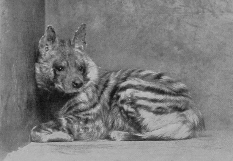 The remaining family of the Australian marsupials constitutes a parallel to the carnivorous order of the higher mammalia, all its members being more or less flesh-eaters, and having their dentition modified with relation to such habits. One of these (the Tasmanian Wolf, or Tiger of the colonists, better known to zoologists as the Thylacine) is an animal of considerable size. Its dimensions equal those of a wolf or mastiff, with which the contour of its body and more especially that of the head very nearly correspond. In common with the true dogs, the thylacine hunts its prey by scent. This is well attested to by the following incident, as related by eye-witnesses. While camping out among the hills in Tasmania their attention was attracted very early one morning by a brush-kangaroo hopping past their fire in an evidently highly excited state. Some ten minutes later up cantered a she thylacine with her nose down exactly on the track, evidently following the scent, and in another quarter of an hour her two cubs came by also in the precise track. While not very swift, the Tasmanian "tigers" possess immense staying power, and will keep up a long, steady canter for many hours on end. Accustomed in its primitive state to run down and prey upon the kangaroos, wallabies, and other weaker marsupial mammals indigenous to the regions it inhabits, the Tasmanian wolf speedily acquired a predilection for the imported flocks of the settlers, and proved almost as destructive to them as its Old World namesake. To check its ravages, a price was put upon its head by the Tasmanian Government; and this measure, in conjunction with the rapid advances towards the complete settlement of the country which have been accomplished within later years, has compassed this animal's extermination in all but the wildest and {373}most inaccessible mountain districts. The colour-markings of this animal are somewhat striking, the grey-brown tints which characterise the ground-hues of the body and limbs being varied by a series of dark bands traversing the buttocks, these being widest in this region, and continued forwards to the middle of the back. A somewhat similar cross-stripe pattern of ornamentation occurs in the relatively small member of the same family described later on as the Banded Ant-eater.