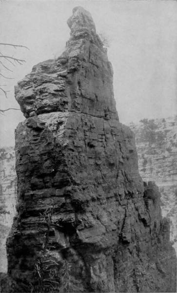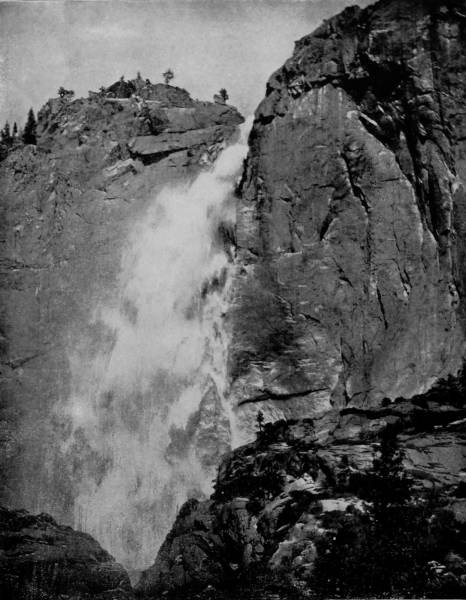 Some weeks were spent traveling off the line of road among the ruined villages of the Cliff-Dwellers, and in photographing the more rugged scenery of the Rio Grande River. Then we continued our journey westward over the Atlantic and Pacific and the Southern Pacific Railroads to California, where nearly three months were spent among the towns, Yosemite Valley, Big Trees and mountains of that summer-land. On the appearance of spring we traveled north by way of the California and Oregon Railroad, still making side trips by stage-coach and wagon, to Portland, from which point excursions were made up the Columbia and Willamette Rivers. At Victoria, British Columbia, we took steamer for Alaska, and 13returning we passed through the Cascade Range over the Northern Pacific, working our way back east. But we continued to make detours a long way off the main line of road, thus visiting the Falls of the Missouri, the Black Hills, the Custer battle-field, Devil’s Tower, and Yellowstone National Park, in which latter wonderland we spent two weeks photographing its scenery and extraordinary formations.