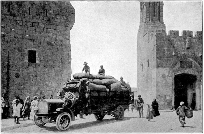 Instead of the soft-footed camels, the motor truck stood at the gates of the Holy City.