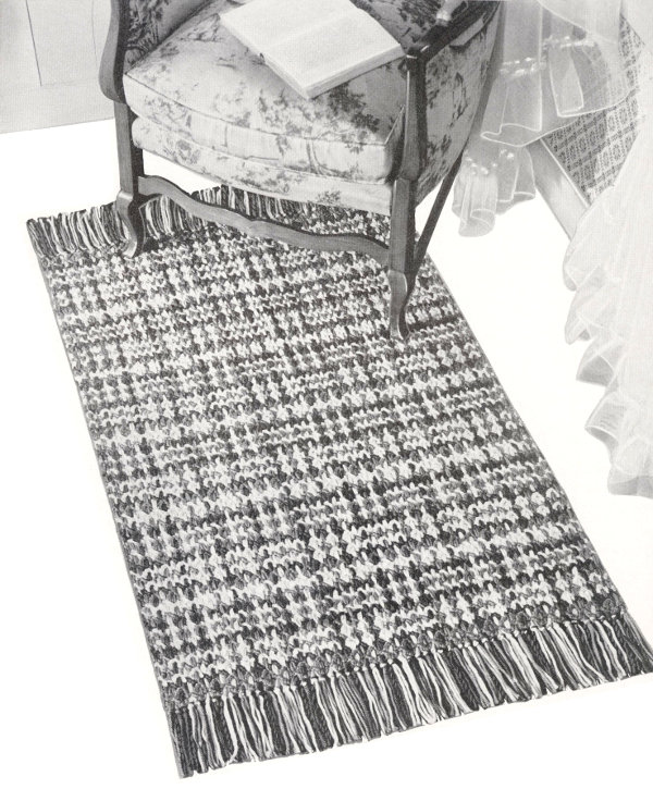 SMALL RUG: With Black, ch 67 and work in same manner as large rug until work measures 27 inches ending with the Black row.