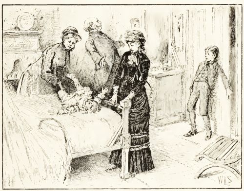 Nan's visitor, Miss Rolf, left the little shop, and walked away in the winter's dusk up the main street, and down one of the more secluded streets, where the "upper ten" of Bromfield lived. Bromfield was a large dull town, full of factories and smoke, and had a general air of business and money-making. The houses on the pretty street to which Miss Rolf directed her steps seemed to be shut away from all the dust and noise of the town, and Mrs. Grange's gateway was the finest and most aristocratic-looking one in the row. Miss Rolf went in at the gate, past a pretty lawn dotted with cedars, to the side entrance of a long low stone house, within the windows of which lights were already twinkling. She had a curious, amused smile on her face as she went down the hall, and it had not faded when she entered the parlor fronting the garden and the lawn.