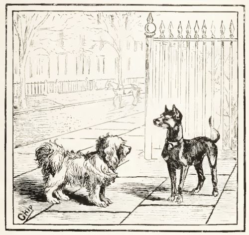 "Now yer stop dat," said Mammy. "Yer better gwuf fum yer!" But Billy, being master of the situation, stood his ground, and I dare say Mammy would have been lying there yet, but fortunately Uncle Sambo and Bill, the wagoners, came along the big road, and hearing the children's cries, they came upon the scene of action, and taking their whips to Old Billy, soon drove him away.—[From Diddie, Dumps, and Tot, published by Harper & Brothers.]
