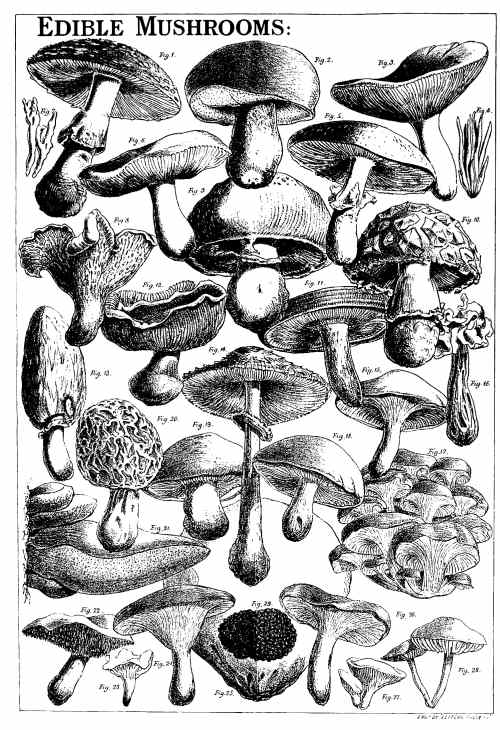 The two illustrations, EDIBLE MUSHROOMS, and POISONOUS MUSHROOMS have been moved to end of the book, since they are linked to the various varieties.