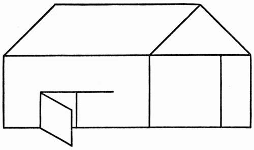 First you can make a little rail fence that stretches across one corner of the barn floor. To do this, lay down six corn cobs in zigzag fashion on the floor with the ends not quite as far apart as the cobs are long. Then across every two cob ends lay another cob and finish the fence in this way, making it very snug.