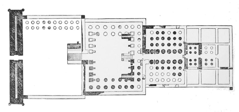 [3] A corresponding curvature in plan has also been discovered in Egyptian architecture, for example, in the Second Temple Court at Medinct Abou.