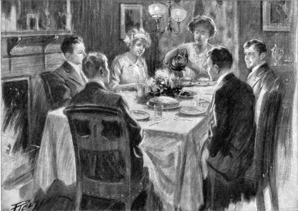 “I wonder if a fellow has more fun living in the village,” mused Poke. “Of course it’s nice being in hall when you know there are loads of[15] chaps envying you your room, but, after all, we don’t have much chance for larks, what with study hour, and being in at ten, and all that. I believe I’d like to try a house next year, Gil.”