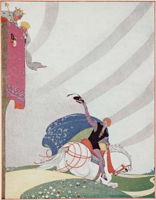 | HE RODE AWAY ON HIS WHITE HORSE AND TURNED TO WAVE HIS HAND TO HIS MOTHER AND FATHER BEFORE HE WENT OVER THE HILL-TOP | 32 |