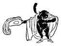 When the Rainbow Cat had gone some way and could already see the giant from afar, he stopped, opened his bag, and drew out a large black cloak. This he put on, pulling the hood well over his ears. He then sat down and appeared to be lost in deep thought.