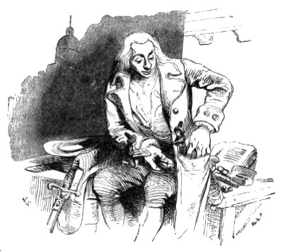 7. Intorno a Newton, Swift raccontava ancora come un giorno il suo servo, avendolo avvertito che la mensa era imbandita, nè vedendolo comparire, fosse tornato addietro, e lo trovasse salito sopra una scala da biblioteca appoggiata ad uno scaffale, con un libro nella mano sinistra, reggendosi il capo colla destra, assorto in tale estasi, che dopo averlo chiamato tre volte, gli convenne scuoterlo per distorlo dalla sua meditazione. Era ben questo l'ufizio del percussore.