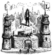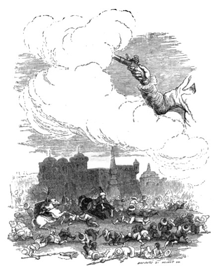 18. Il monarca cui si allude in questo ingegnoso casotto di burattini non è nient'altro che Luigi XIV; e, per dir vero, la flotta che questo gran re fece allestire nel 1689 per ricondurre il suo congiunto Giacomo II nel regno de' padri suoi gli fu appunto tanto utile quanto se un titano se la fosse con una mano portata via.