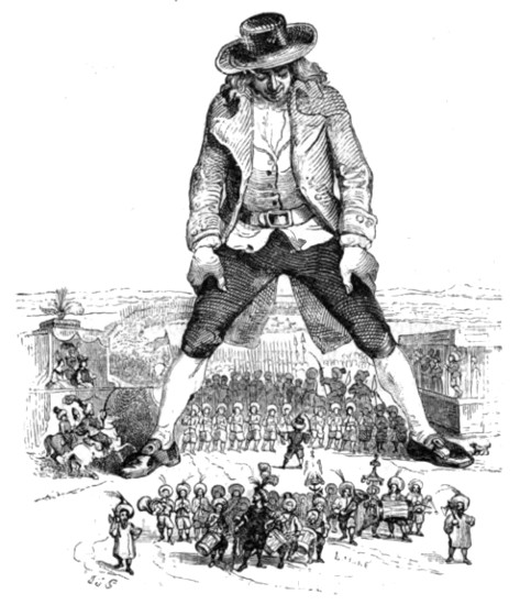 Nel Viaggio a Brobdingnag la satira è di un'applicazione più generale, ed è difficile lo scoprirvi cose che si riferiscano agli avvenimenti politici ed ai ministeri dell'epoca in cui venne pubblicato. Il fine di tale opera si è indicare le opinioni che adotterebbe su gli atti ed i sentimenti dell'uomo un essere fornito di un'indole fredda, ponderata, filosofica e d'un'immensa forza fisica. Il monarca di quei figli di Titani è la figura di un re patriota, indifferente a quanto è di mera curiosità, freddo per quanto è solamente bello, ed unicamente interessato a ciò che concerne l'utilità generale ed il bene pubblico. I rigiri e gli scandali di una corte europea sono agli occhi di un tal principe altrettanto odiosi negli effetti, quanto spregevoli nei loro motivi. La duplice antitesi offerta da Gulliver, che da Lilliput, ov'era un gigante, arriva in mezzo ad una schiatta d'uomini fra i quali non è più che un pigmeo, è di un effetto felice. Se vogliamo, si ripetono necessariamente le stesse idee, ma poichè cangiano d'aspetto nella parte rappresentata dal narratore, ciò merita piuttosto il nome di continuazione che di replica.