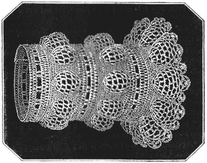 Taylor’s Crochet Thread, No. 12; Needle No. 23, Bell Gauge.—All stitches that are not worked in the chain are to be worked in Double Crochet.