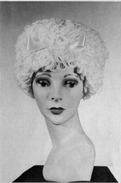 Row 2—K 1, * P 1, K 1; repeat from * to end. Repeat these 2 rows 4 more times for ribbed facing. Dec. row—wrong side—Work 8 sts in ribbing, * p 2 tog., work next 12 sts in ribbing; repeat from *, end last repeat work 7 sts in ribbing; (55 sts.) Work remainder of hat with 1 strand knitting worsted and 2 strands of mohlon worked tog. K 1 row. K next row from wrong side for turning ridge. K 1 row.