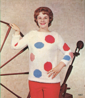 Front Band: With No. 4 needles, cast on 15 sts, right side K 7, P 1, K 7; wrong side P 7, K 1, P 7. Knit in this manner until band is right length for sweater. Make a band for each side. Sew bands to front of sweater. Fold on purl stitch and slip stitch to wrong side of sweater.