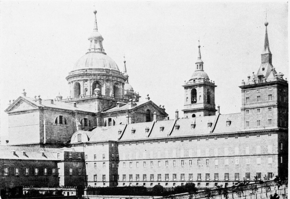 Buildings, like poems or pictures, reflect the character of those who conceive and produce them. The Escorial may be likened to a document or a painting revealing the temperament, the aspirations, and the philosophy of a powerful, sombre, and withal, fascinating personality. Its severe form and its restrained embellishment are stamped with the individuality of the monarch who devoted the leisure of thirty years of his life to the erection, extension, improvement, and internal adornment of an immense and costly pile, comprising within its walls a monastery, a church, a burial-fane, a palace, a college, and a gallery of the arts. The Escorial was a place of retirement, an imposing hermitage for the devout and moody Philip II. of Spain. It is a monument{2} to his power, a revelation of his mind; and, if we study the edifice, we shall learn what manner of man he was who founded it.