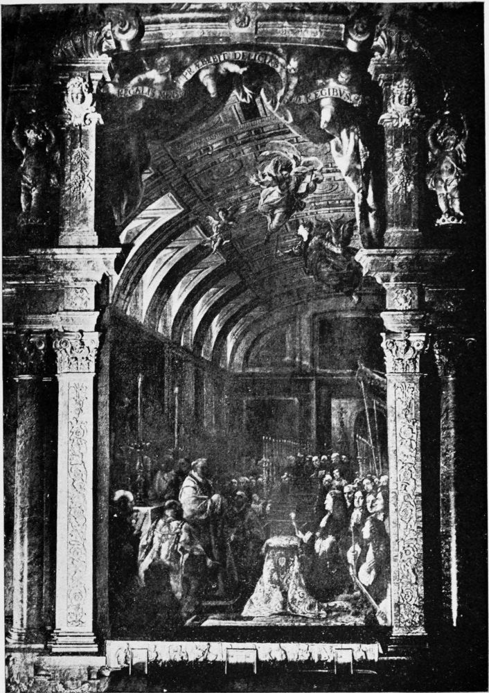 In 1570 Philip married for the fourth time, his bride being Anne of Austria. A year later the queen gave birth to Fernando, who died at Madrid at the age of seven, and was buried in the Escorial. The body of Don John of Austria, natural brother of Philip, was interred beneath the altar of the{13} church in the following year. In 1574 the remains of the illustrious Emperor Charles were transferred to the vaults of the Escorial with much ceremony, and at the same time several other royal coffins were removed to the newly-made royal resting-place. During the solemn service a terrific storm destroyed the dais which had been erected for the ceremony, and the splendid trappings that covered it.