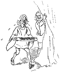 With his Daughter behind him, so rosy and fair;