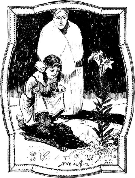 Das sah nun sein Mütterlein im Himmel droben und hatte keine Ruhe, weil ihr Kind sich so sehr grämte und sie ihm nicht helfen konnte.[118] Darum bat sie den lieben Herrgott: »Bitte, bitte, laß mich nur solange wieder hinunter auf die Erde, bis ich dem Friedel mein Wiegenlied gelehrt habe. Er kann es ja nirgends finden, mein armer Bub. Es steht ja nirgends geschrieben. Ich habe es mir ja selber für ihn ausgedacht.«