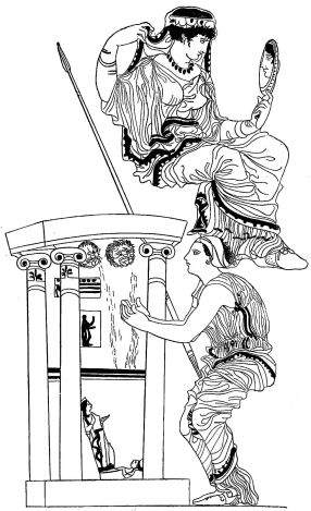 | 4. | Costumes of the Fifth Century B.C. (Rape of Helen.) Vase-painting by Hiero. From Gerhard. Trinkschalen und Gefäsze. Plates 11 and 12 | 10 |