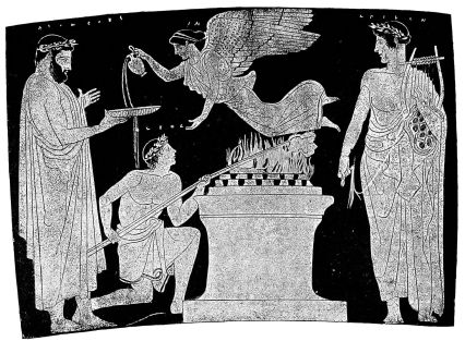 | 9. | Costume of Ephebos (Adoration of a Hermes). Vase-painting from Schreiber. Kulturhistorischer Atlas, Altertum. Plate 14, 3 | 18 |