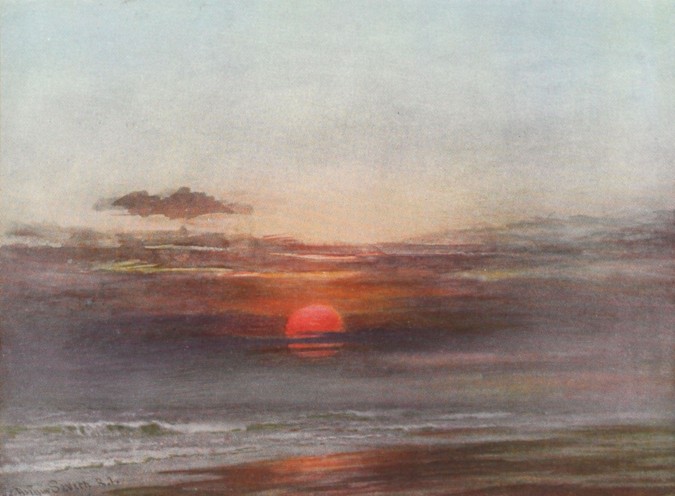 Gradually, gently, and by faint degrees, a glimmer of pale gold divided the darkness with the wavering rise of dawn—a cool wind parted the air into sweet breaths of fragrance—and in the centre of the awful stillness a scarlet sun rose slowly, fixing the red seal of God on the closed history of a world!