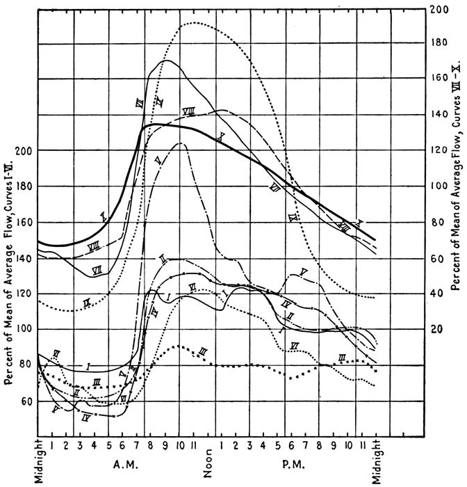 | 17. Dry Weather Flow. 18. Methods for Predicting Population. 19. Extent of Prediction. 20. Sources of Information on Population. 21. Density of Population. 22. Changes in Area. 23. Relation between Population and Sewage Flow. 24. Character of District. 25. Fluctuations in Rate of Sewage Flow. 26. Effect of Ground Water. 27. Résumé of Method for Determination of Quantity of Dry weather Sewage. Quantity of Storm Water. 28. The Rational Method. 29. Rate of Rainfall. 30. Time of Concentration. 31. Character of Surface. 32. Empirical Formulas. 33. Extent and Intensity of Storms. | 24–50 |
