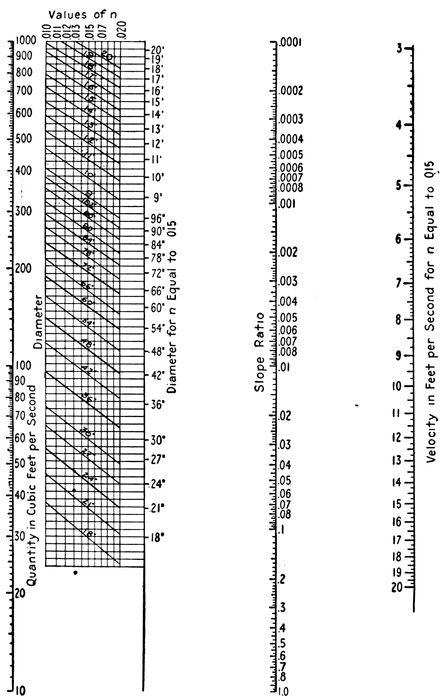 | 34. Principles. 35. Formulas. 36. Solution of Formulas. 37. Use of Diagrams. 38. Flow in Circular Pipes Partly Full. 39. Sections Other than Circular. 40. Non-Uniform Flow. | 51–77 |