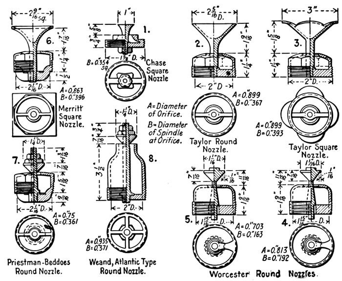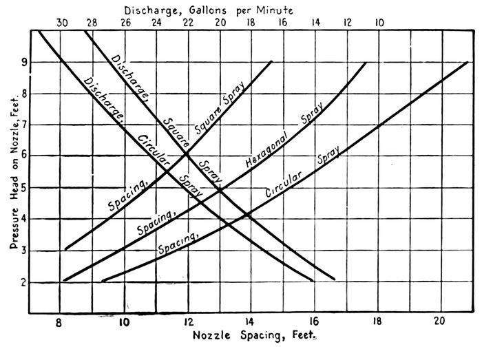162. The use of half-spray nozzles is not always advocated as it is considered that their use does not markedly improve the distribution. Where half nozzles are used, a margin of 18 inches to 2 feet should be allowed between the edge of the filter and the nozzle, to prevent the blowing of raw sewage from the filter.