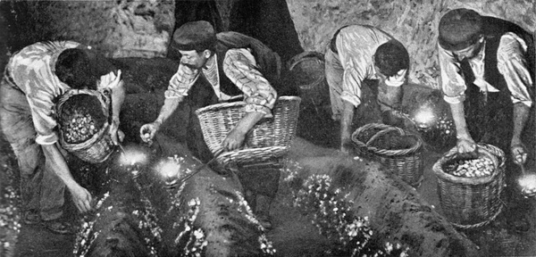 Die Bereitung des Weines geht noch in der alten Weise vor sich, wie sie schon im alten Ägypten betrieben wurde, indem man den gekelterten Most durch die an den Weinbeeren selbst sitzenden wilden Hefen gären läßt. Nur ganz schüchtern machen sich Bestrebungen geltend, auch diesen Vorgang durch Hinzufügen von reingezüchteten Hefen edler Abstammung zielbewußt zu leiten. Da der ausgepreßte Traubensaft ein außerordentlich günstiger Nährboden nicht nur für diese Hefe-, sondern auch für die zahllosen darein geratenden Schimmelpilze und Bakterien ist, muß die Hauptarbeit der Weinbereitung darin bestehen, die durch letztere hervorgerufene abnorme Gärung zu verhindern nicht nur durch peinlichste Sauberkeit in allen Dingen, sondern vor allem dadurch, daß man für eine kräftig wachsende Hefe sorgt, die selbst der ärgste Feind jener mit ihr zu konkurrieren versuchender Pilze ist. Durch die kräftige Entwicklung der Weinhefe werden sie rasch überwuchert und in ihrer Entwicklung gehemmt.