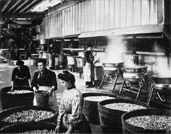 Die Herstellung der Branntweine war den alten Kulturvölkern[S. 711] durchaus unbekannt. Sie kam erst etwa mit dem 8. Jahrhundert mit dem Aufblühen der chemischen und alchimistischen Wissenschaft unter den Arabern auf, und der Arzt Gabir Ibn Hajjan, in Europa Geber genannt, gilt als der Entdecker des Alkohols, dessen Name ja arabischen Ursprungs ist. Als diese Neuerung im Abendlande bekannt wurde, bemächtigten sich vor allem die Klöster derselben und begannen bald einen schwunghaften Branntweinhandel. Im 14. Jahrhundert war Italien das Hauptexportland des zunächst nur als Medikament verwendeten Schnapses, der aber bald auch als Genußmittel solchen Beifall fand, daß schon ein Jahrhundert später der Steuerfiskus in Deutschland das Getränk mit einer Verbrauchsabgabe belegte. Damals wurde von stärkemehlreichen Früchten fast ausschließlich das Korn zu Branntwein verarbeitet, und zwar bald in solchem Maße, daß die Regierung die Herstellung des Kornschnapses an manchen Orten ganz verbot, weil ein allzugroßer Teil der köstlichen Brotfrucht dadurch ihrem eigentlichen Zweck entzogen wurde. Erst im 18. Jahrhundert kam die Verwendung der Kartoffel als Rohfrucht für die Schnapsbrennerei auf und 1750 soll zu Monsheim in der Pfalz die erste Kartoffelbrennerei errichtet worden sein. Jetzt wird vorzugsweise diese Nährfrucht dazu verwendet, und zwar zur Herstellung von fuselölfreiem Reinspiritus, der dann technisch als solcher verwendet oder mit Beigabe von aromatischen Essenzen zu den mannigfaltigsten Schnäpsen verarbeitet wird.