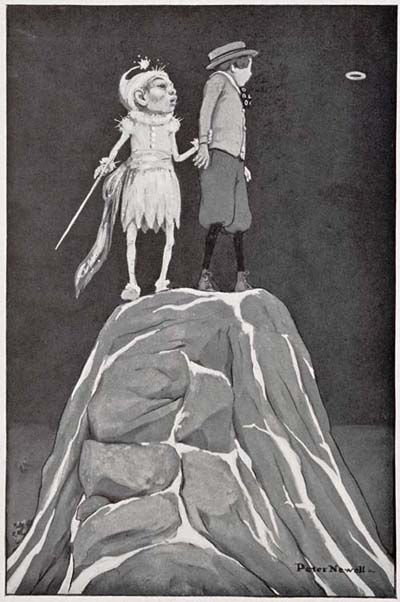 It was the work of a second. The little people all sprang into the air together and lo! in front of Billy stretched a slender rainbow bridge, leading from his feet to the snow mountain on which was the imprisoned Evening Star. And at each end was a great pot of yellow gold as large as a preserve kettle.