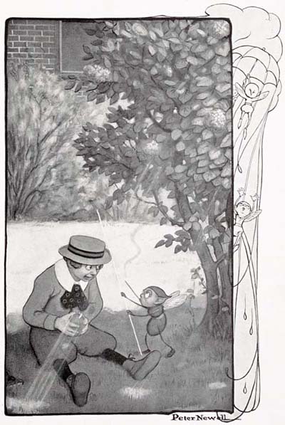 He struggled and twisted in his efforts to escape, but Nimbus held him fast, and Jack Frost kept him small by the clutch of his icy fingers.