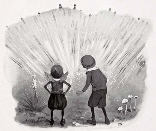 “I am one bee!” answered the bee, striking a match on Billy’s orange and lighting a grapevine cigarette.