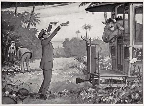 For a little while Billy, standing beside Jack Frost, watched them as they galloped off toward where the blue of the sky met the white of the snowfields. The Equine Ox seemed not to mind the load he carried, and just as Billy turned away the conductor and the motorman were lighting their pipes preparatory to settling down for a comfortable ride. Then Jack Frost spoke to him and Billy saw them no more.