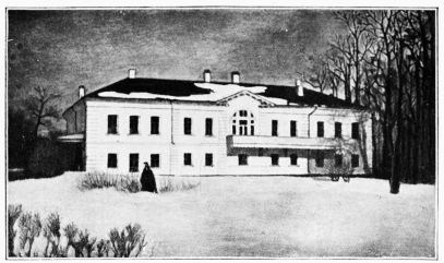 The house itself is a plain white rectangular two-storied building of stuccoed brick, and it would be hard to imagine a simpler and less pretentious place than the home in which Tolstoy has spent the greater part of his life. It boasts neither piazzas nor towers; indeed, no architectural ornaments of any kind, nor are vines or other creepers trained upon the flat walls to relieve their striking whiteness or soften their rectangular outlines. The house was not completed all at once, but was enlarged in proportion to the needs of the family. On one side, devoid of windows, there is a low porch, near which stands an old elm tree, called “The Tree of the Poor.” Close to its trunk is{38} a bench on which the peasants sit to await the coming of Count Tolstoy. Here he listens with unwearying patience to many stories of distress and difficulty, and gives in return, not only sympathy and advice, but such material assistance as may lie at his command.