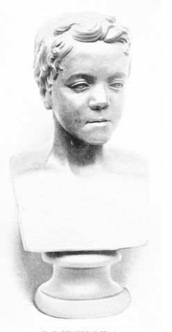 Richmond Thackeray was at this time Collector of the district called the Twenty-four Pergunnahs. Two years later he died, and in 1817 his son was sent to England to be educated, and was placed in the charge of his aunt Mrs. Ritchie, who first sent him to a school in Hampshire, and then to the establishment of Dr. Turner at Chiswick. About 1818 Mrs. Richmond Thackeray married a second time, and in 1821 returned to England with her husband, Major Carmichael Smyth, and settled at Addiscombe. The following year Thackeray was sent to the Charterhouse, where he remained until 1828. This famous school figured largely in his writings as “Greyfriars.” It was here that Colonel Newcome and Clive, Pendennis, George Osborne, Philip Firmin, and Rawdon Crawley were educated. Charterhouse was the scene of Thackeray’s fight with Venables, in which he sustained the unfortunate accident to his nose that caused a permanent disfigurement in his otherwise handsome countenance. Evidence of this is noticeable in the plaster cast executed by J. Devile, which represents Thackeray at the age of eleven.{36}