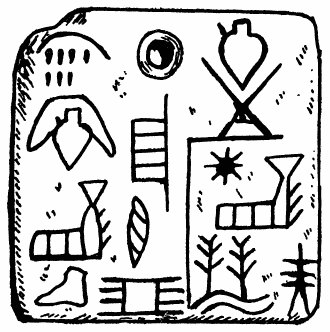 In jeder Hieroglyphe sah man ein Bild oder Symbol irgend eines tiefen Gedankens und suchte sie wie einen Rebus zu erraten.[S. 16] So las der bekannte viel wissende Jesuit Athanasius Kircher, der von 1601–1680 lebte und die Laterna magica u. a. erfunden hat, die sieben Zeichen: