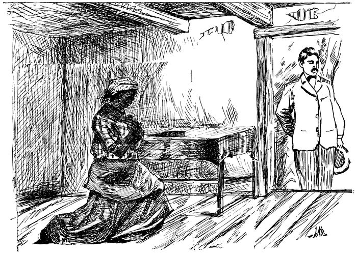 177Morning came soon, and the hands sallied from their quarters but with them came no George Gray. The word spread rapidly and soon reached both the cabin of Prayin’ Hanner and the mansion that he was missing. As soon as the proprietor could dress himself and make proper inquiries, he hastened to the shanty of the mother whom he found at her morning devotions, having begun them just as she saw his approach. Not wishing to disturb her he stopped before the door and caught these words of invocation: