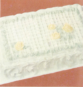 2 Make trellis using 1 cup icing and #4 writing tip. Make parallel rows about ¼″ apart. Repeat at right angles for trellis effect.